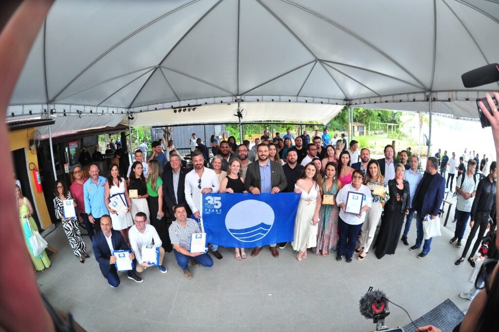 No último dia 11 de novembro, o Programa Bandeira Azul Brasil realizou a primeira cerimônia presencial de entrega da Bandeira Azul para praias e marinas que comprovaram o cumprimento dos critérios estabelecidos pelo programa. O evento foi realizado no Guarderya Beach Club, no município de Niterói – RJ, e contou com a presença de gestores de praias e marinas, prefeitos e secretários de turismo e de meio ambiente, representantes de prefeituras de diversas partes do país e da coordenadora-geral de turismo responsável do Ministério do Turismo, Rafaela Lehmann. No total, 40 locais foram premiados com a Bandeira Azul, sendo 22 deles no estado de Santa Catarina.