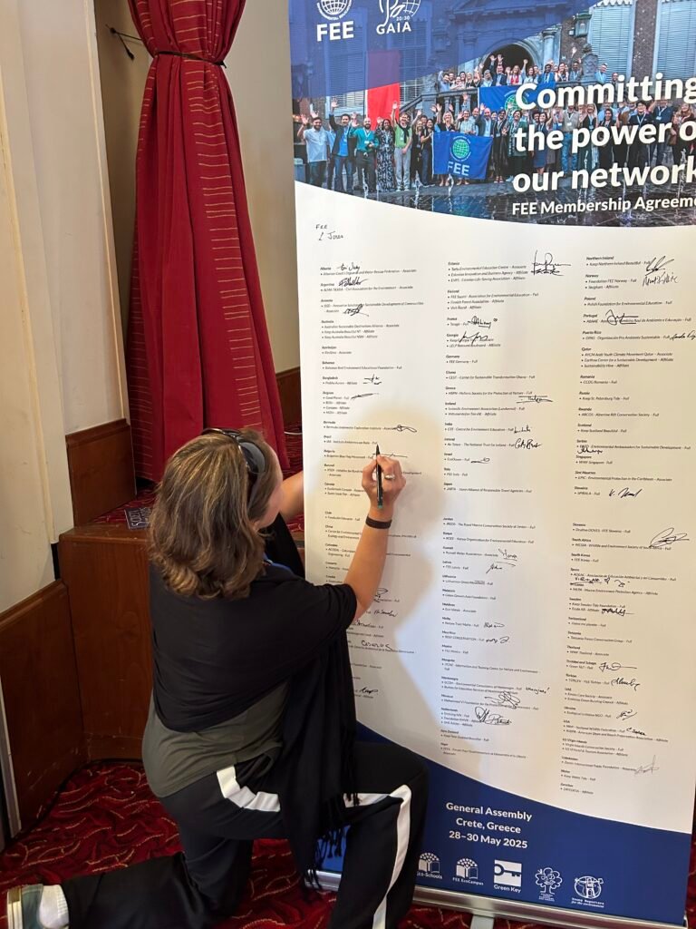 Outro momento simbólico do encontro foi a assinatura coletiva do compromisso “Committing to the power of our network” (Comprometendo-se com o poder da nossa rede), que reafirma a força colaborativa da rede FEE. O Instituto Ambientes em Rede assinou o documento em nome do Brasil, ao lado das demais ONGs participantes.