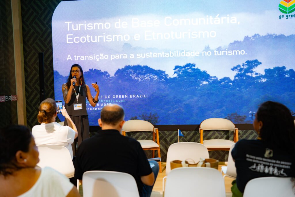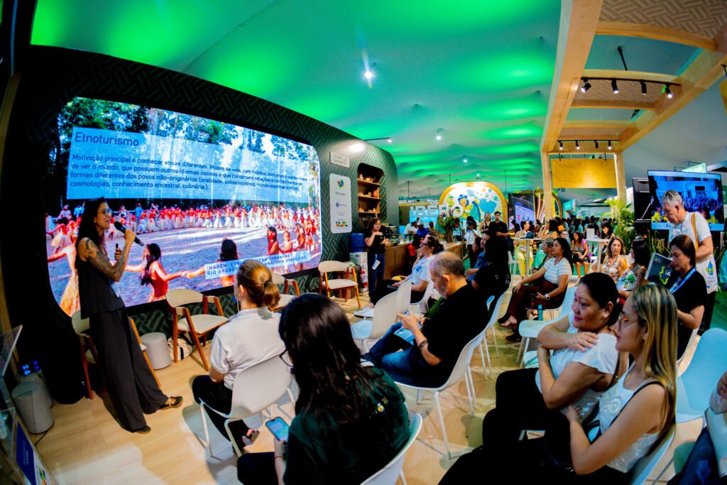 No sábado, 15 de novembro, o IAR ampliou sua atuação ao participar de dois painéis na Green Zone, área aberta ao público, dedicada ao compartilhamento de experiências e soluções socioambientais. À tarde, integrou o painel “Turismo Responsável: da Floresta ao Oceano”, promovido pelo Ministério do Turismo. O debate mostrou como boas práticas, educação e gestão podem transformar o turismo em uma força positiva para pessoas e territórios.