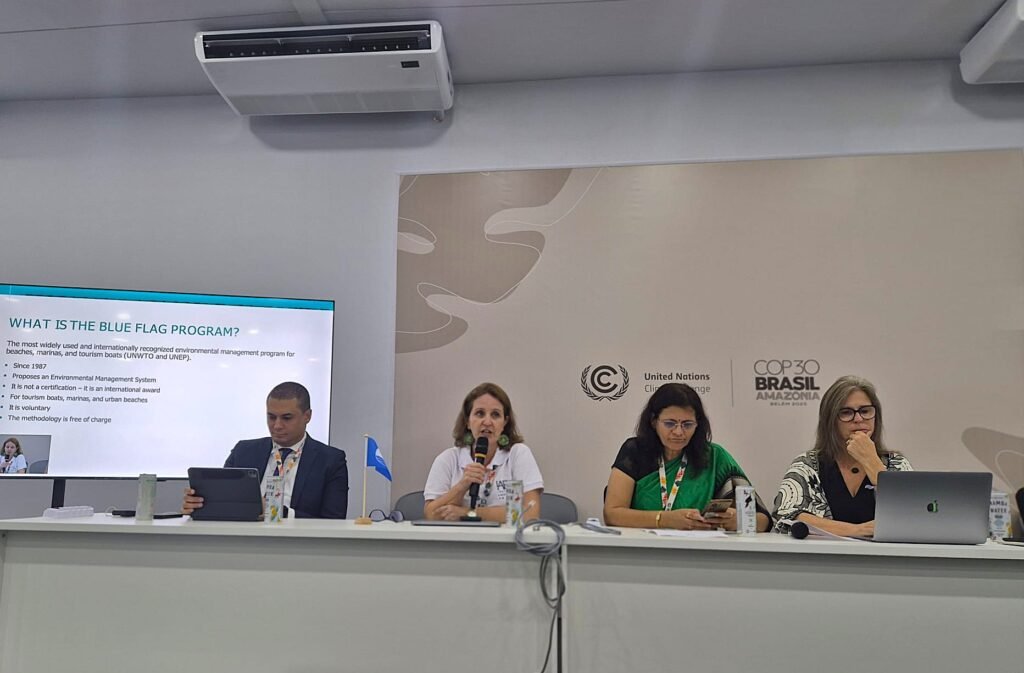O debate contou com a presença de Marinez Scherer, enviada especial para Oceanos na COP30, que apresentou o panorama global da premiação e relembrou sua trajetória na implementação do programa no Brasil. Em seguida, Leana Bernardi, diretora-presidente do IAR e coordenadora nacional do Bandeira Azul, destacou a evolução, os desafios e os avanços do programa no país, reforçando a importância da gestão qualificada e da educação ambiental para fortalecer praias, marinas e embarcações premiadas.