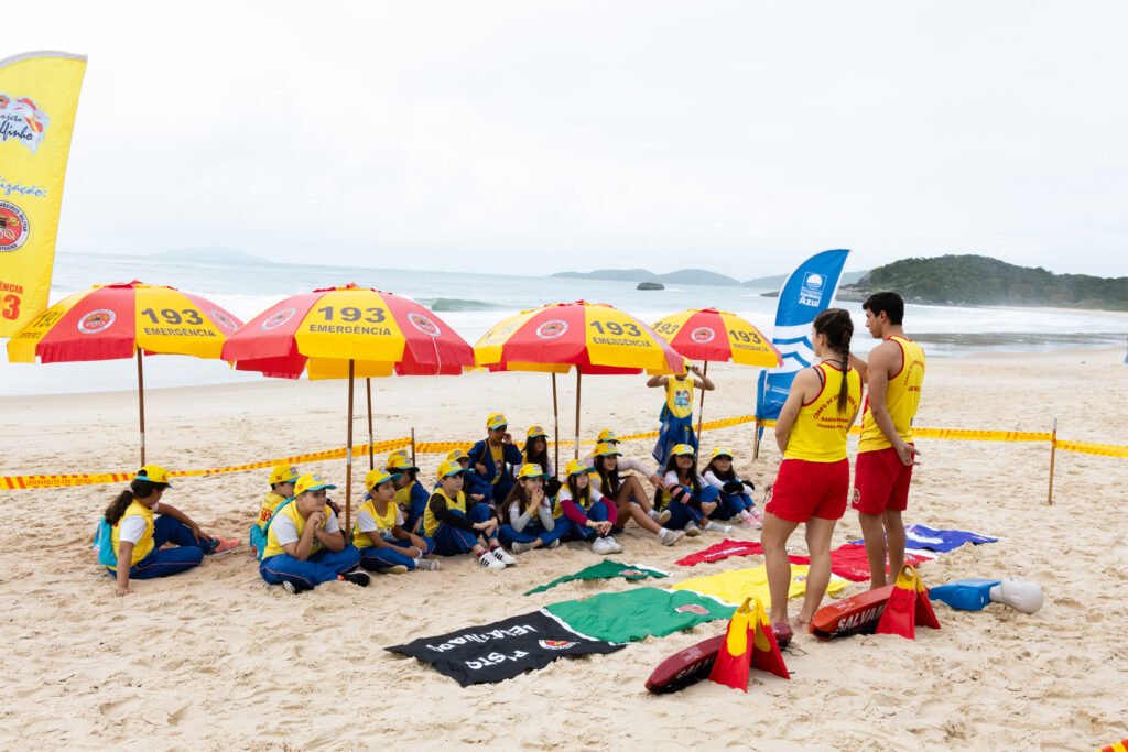 Go Blue”: Atividade de educação ambiental realizada em Bombinhas – SC, promove dicas de segurança para crianças. Crédito de foto: Prefeitura de Bombinhas.