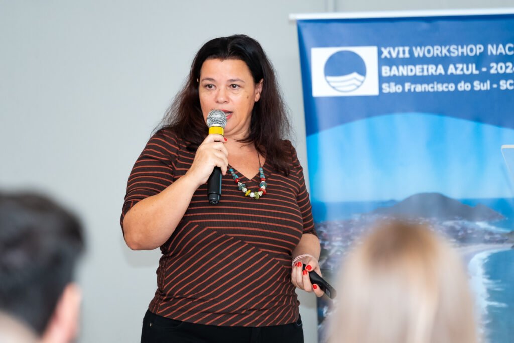 Leana Bernardi, coordenadora nacional do Programa Bandeira Azul, enfatizou a importância do workshop como uma oportunidade única para compartilhar experiências e conhecimentos, ressaltando que o evento proporciona um ambiente propício para a troca de ideias, descoberta de soluções e é um momento crucial para interações significativas entre os participantes. Leana destacou ainda que o compartilhamento de experiências durante o workshop é fundamental para o progresso e aprimoramento contínuo do programa Bandeira Azul no Brasil.