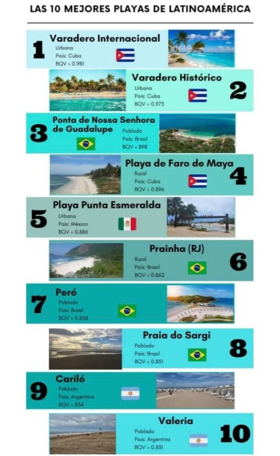A Rede Proplayas, responsável pelo estudo, é uma plataforma de intercâmbio colaborativo de gestão e certificação de praias, presente em 17 países da América Latina e na Península Ibérica. A escolha das melhores praias da América Latina se baseia em métodos científicos que envolvem a qualidade da água e da paisagem,infraestrutura, acessibilidade, qualidade da água e turismo sustentável.